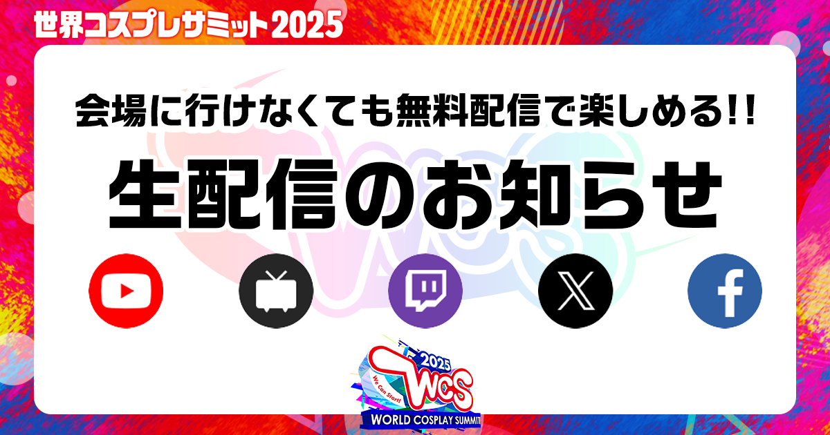 世界コスプレサミット2025の主要ステージを各プラットフォームで生配信いたします✨