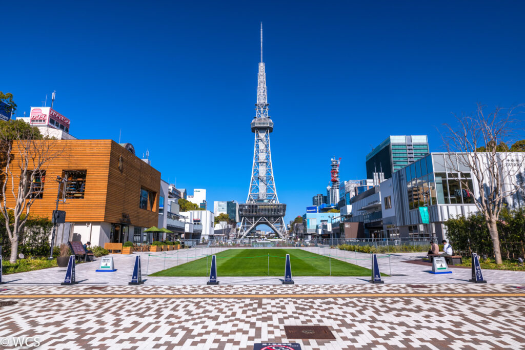 名古屋・栄の中心に広がる「ヒサヤオオドオリパーク」は、都心にいながら自然を感じられる開放的な公園です。2020年に再開発され、洗練された都市空間と緑あふれる広場が融合したこのエリアは、コスプレ撮影にも最適なスポットです。公園内には中部電力 MIRAI TOWERをはじめ、おしゃれな飲食店やショップが並び、イベント期間中は多くのコスプレイヤーが集います。