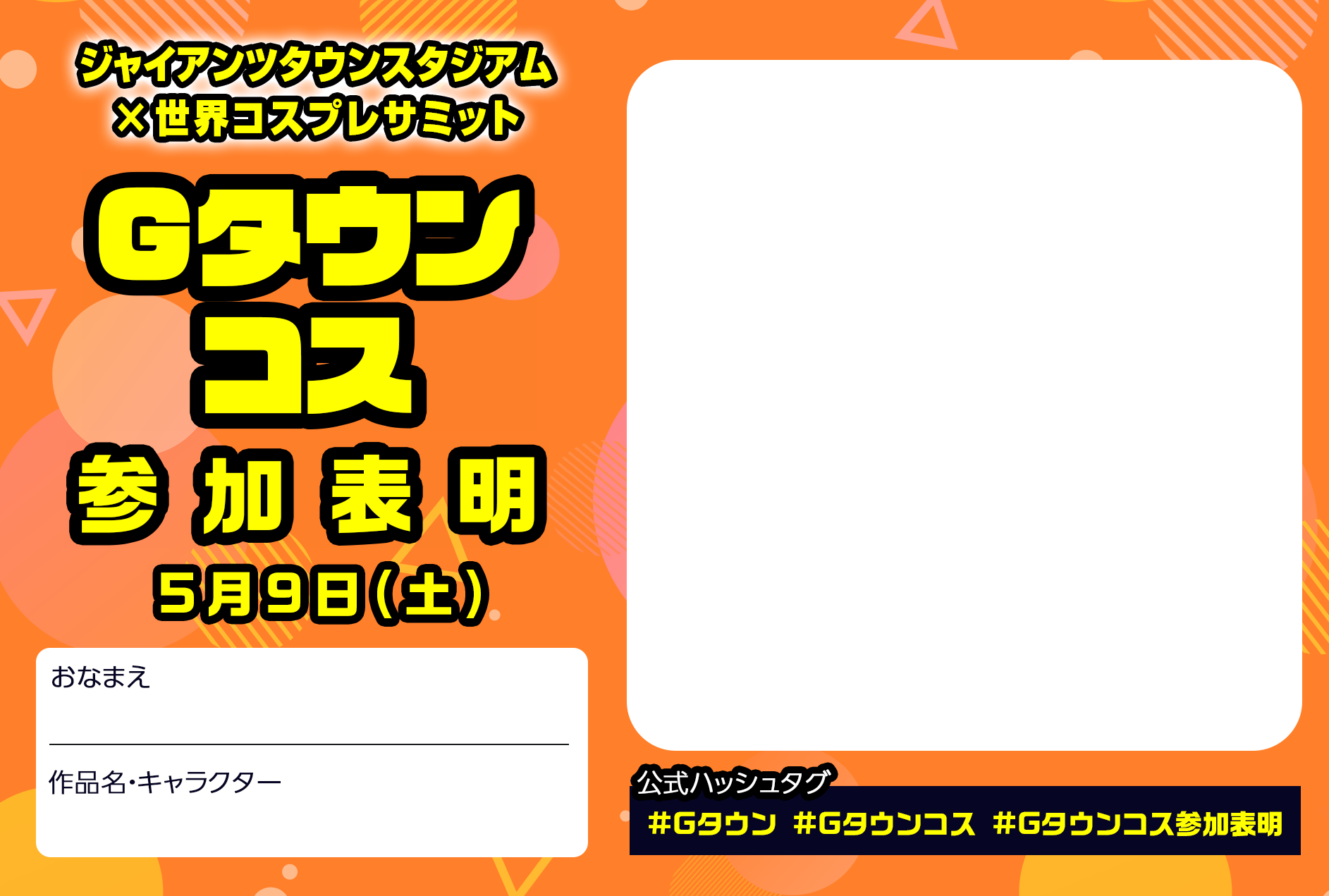 ※コスプレ参加券は、ご自宅からコスプレした状態で自家用車でご来場いただく方のためのチケットです。駐車場、車内での更衣は禁止です。