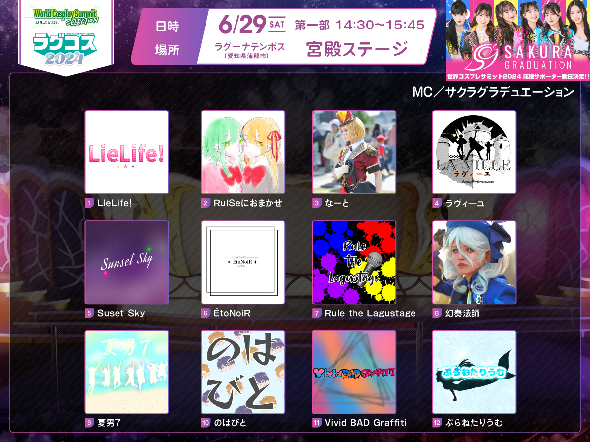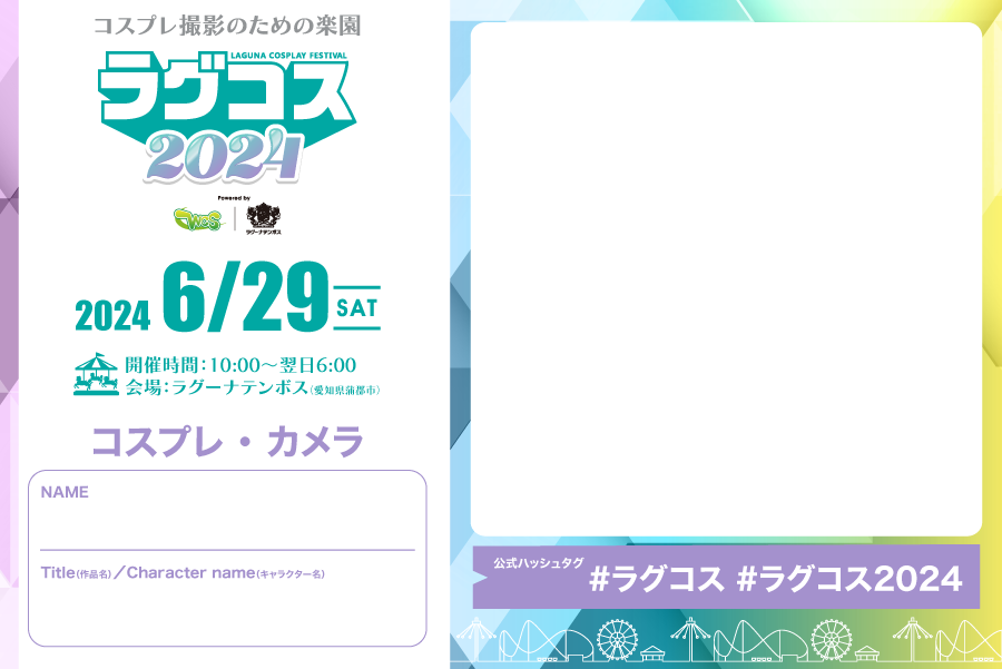 - コスプレイヤー・カメラマンなど問わず、当イベントに参加される方は「ラグコス」のチケットが必要となります。又その際は、ラグナシアの入園券は不要ですのでお間違いないようお願いします。
