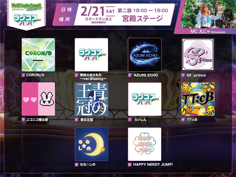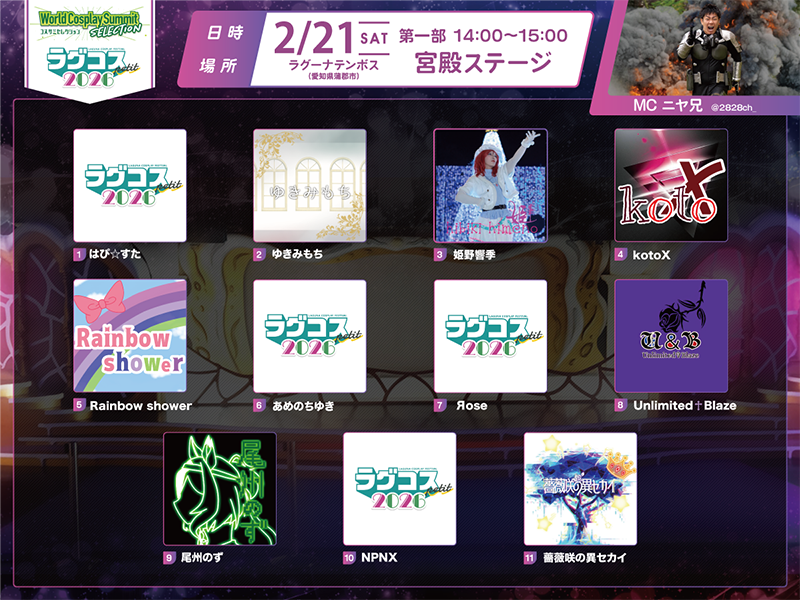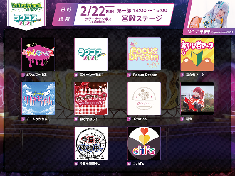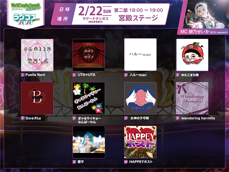 - ステージの写真・映像をSNSで紹介、または今後のラグコスおよび世界コスプレサミット関連イベントの告知等で使用させていただく場合がございます。
