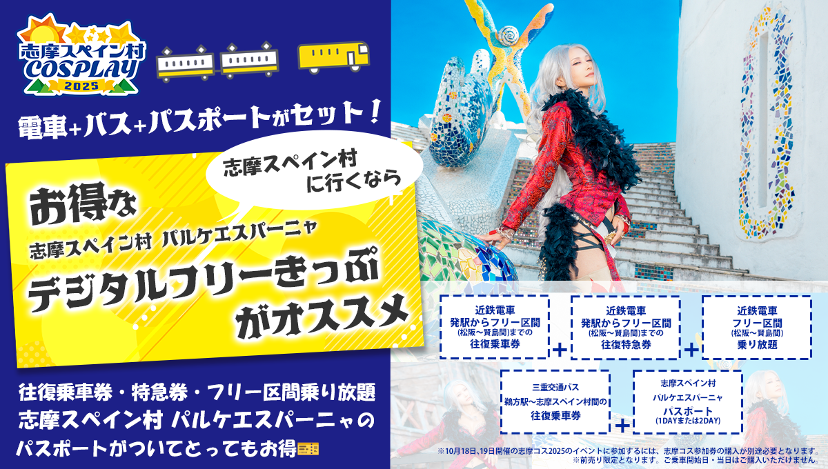 ※志摩コス参加券と志摩スペイン村パルケエスパーニャパスポートがセットのお得なチケットもあります。