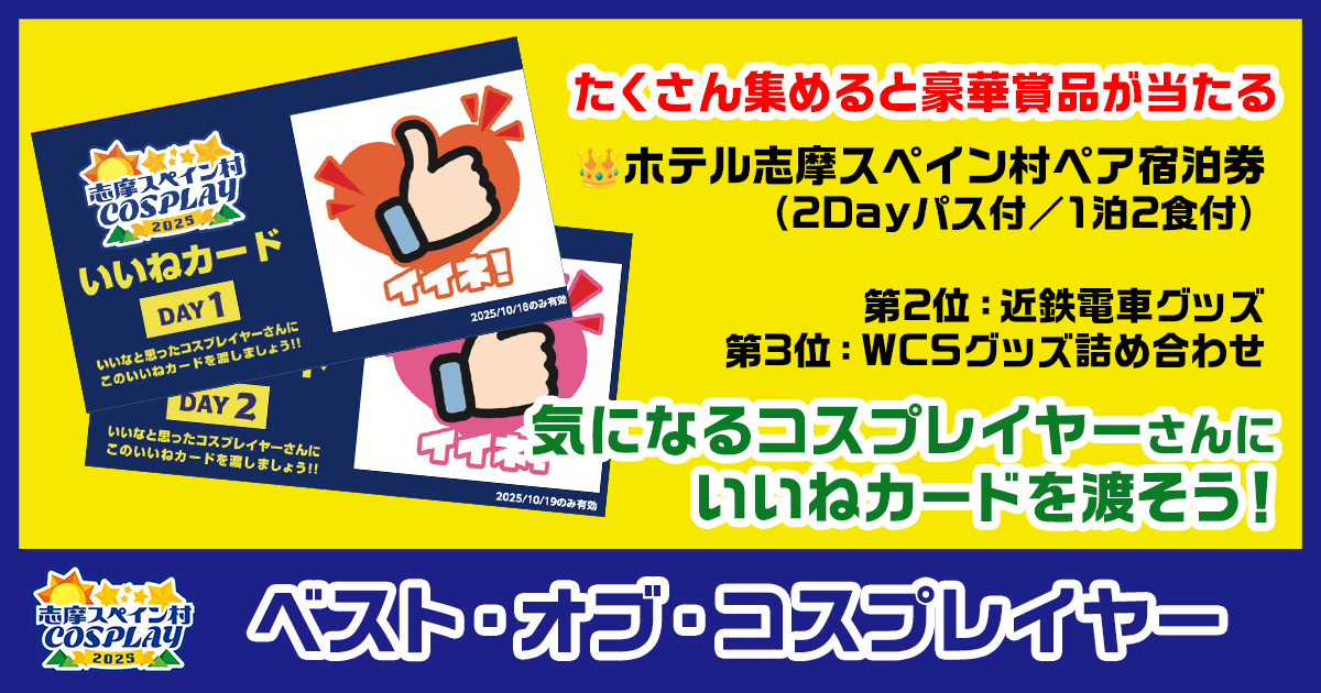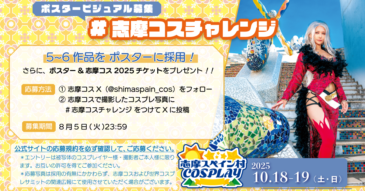 ※志摩コス参加券と志摩スペイン村パルケエスパーニャのパスポートが必要です。