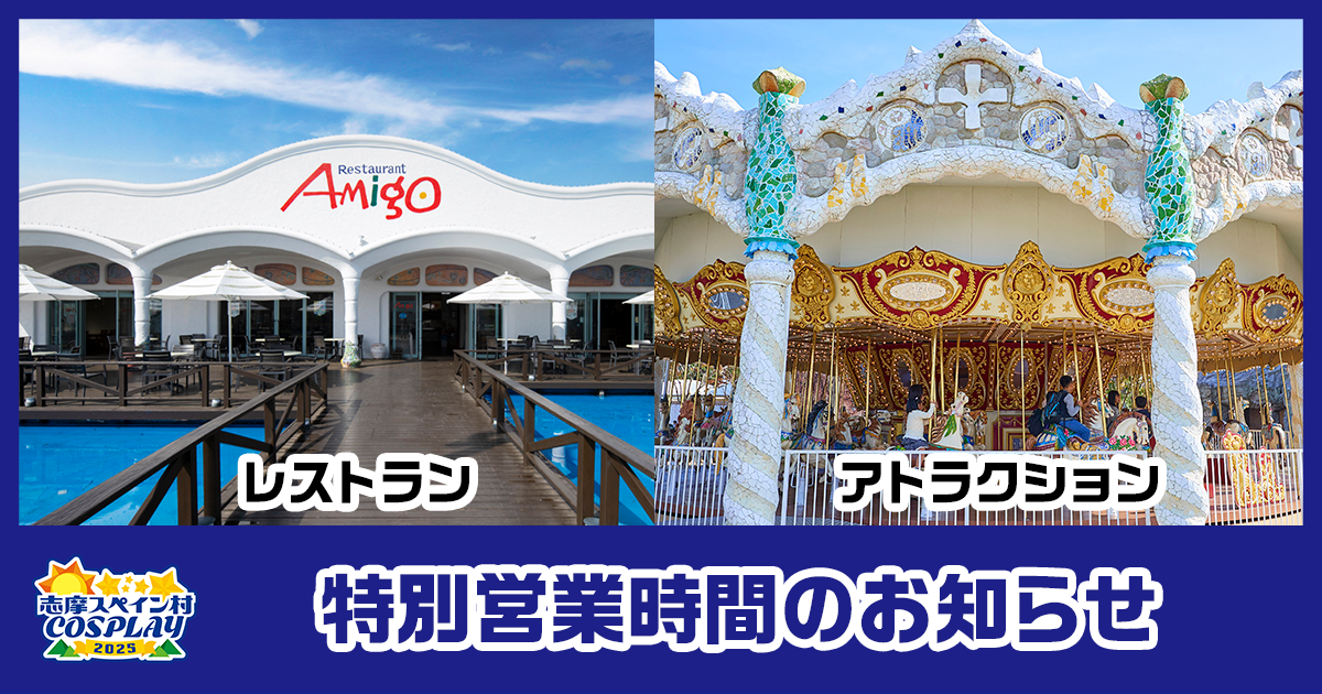※ 通常営業時に配布される「パルケエスパーニャ パスポート優待券」は本プランには含まれません。あらかじめご了承ください。