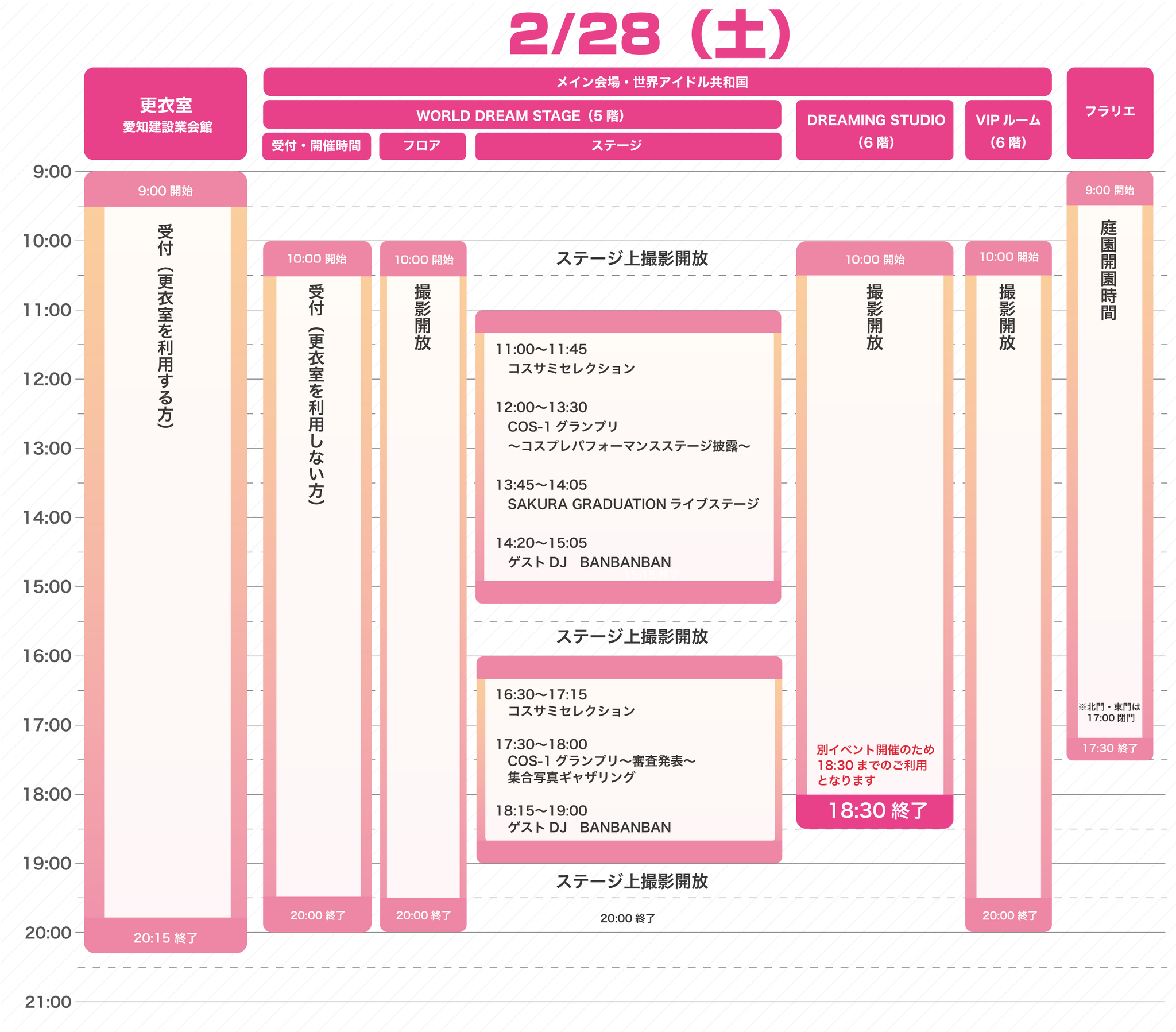- ※更衣室を利用されない方は、世界アイドル共和国へ直接お越しください。